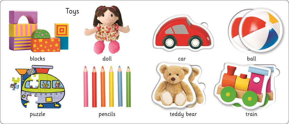 משחק ראשון של התאמה. מניחים 12 חלקים של עצמים מהעולם הסובב את הילד בשקעים המתאימים להם על פני 3 דפי קרטון, ומכירים אותם ו-12 פריטים נוספים המוצגים בדפים. החלקים יכולים לשמש גם בפלאש קארד, כרטיסי למידה.