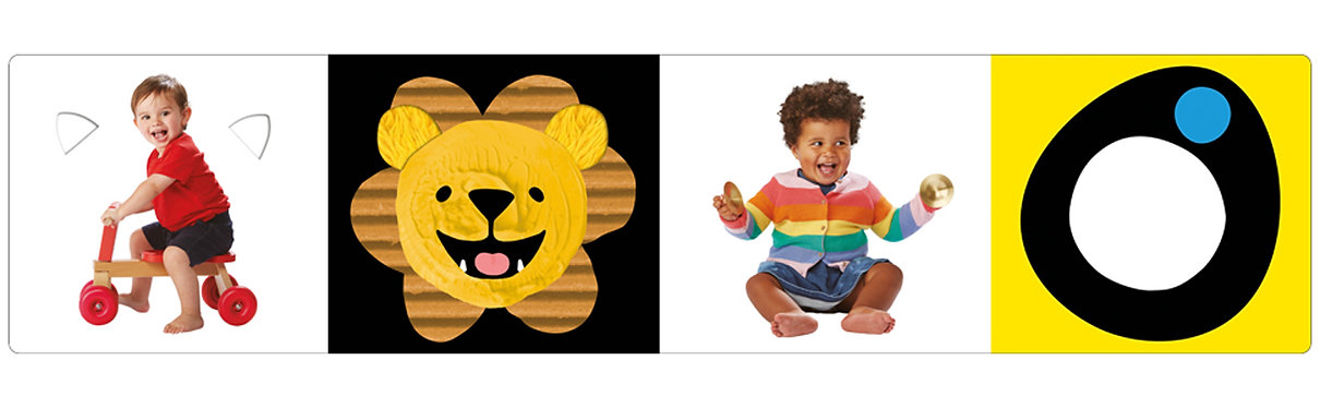 בשתי כפולות עמודים נפתחים הדפים הקשיחים החוצה ליצירת פאנלים עומדים כדי לסקרן את הילד ולמשוך אותו להחזיק את הראש מורם בזמן בטן.