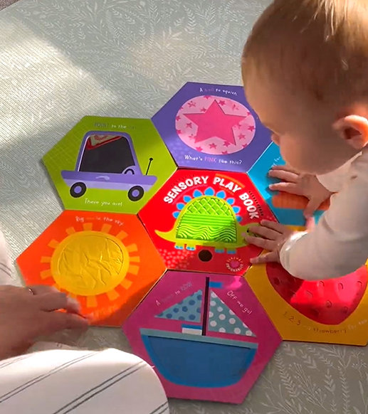 ספר שנפתח למשטח עם פרטי מישוש לחקר והתפתחות סנסורים, ולעידוד זמן בטן.