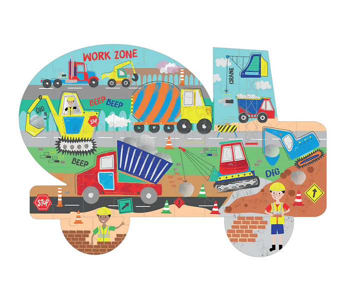 לא רק הקופסא מעוצבת, גם הפאזל. פאזל 40 חלקים להרכבת תמונת מערבל בטון ובו דחפורים, משאיות ועוד. על על הקופסה ועל חלק מהחלקים עיטורים כסופים, שהופכים אותו למתנה נהדרת.