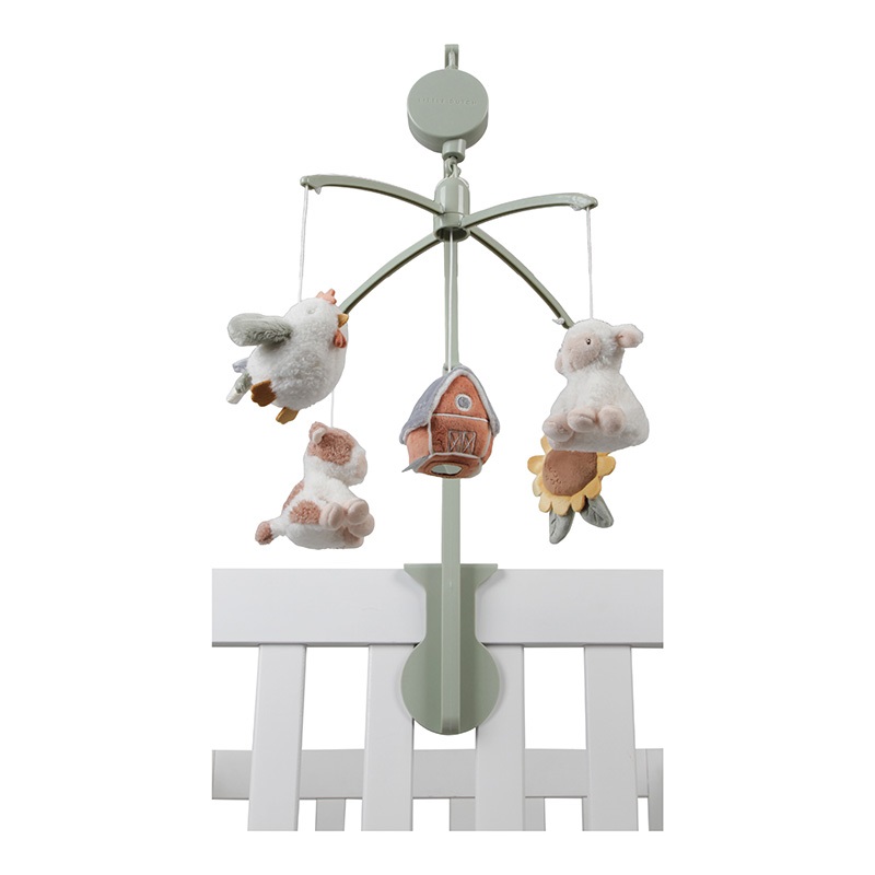 This wooden music mobile has a soothing effect on babies thanks to the sweet lullaby. It features five different hanging toys from the Little Farm collection. Babies enjoy watching the movement of toys, which stimulates their visual development. The music mobile is suitable from birth and easy to attach to the crib