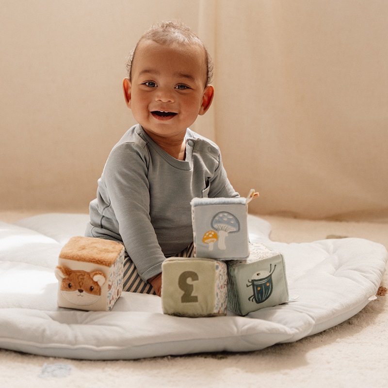 Ring, rattle, and roll! With varied sounds, textures, and features to explore, this fun set of soft activity blocks will keep your little one entertained. Plus, it stimulates hand-eye coordination. The set consists of four multi-sensory blocks, each one defined by soft colours and decorated with number. Baby hands will also discover a captivating labels, plush panels, and the mirror