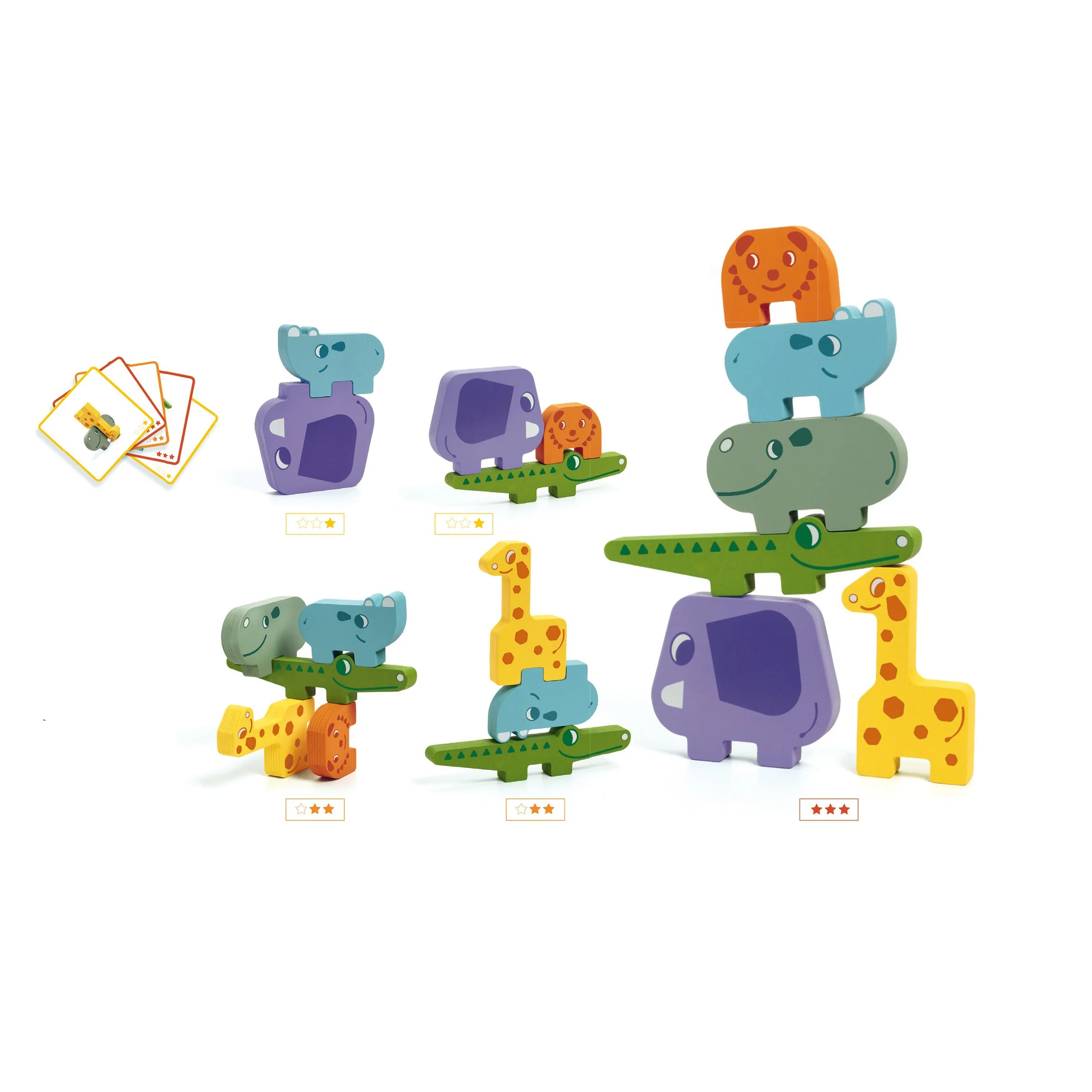 لعبة رائعة ومسلية بتتكوّن من حيوانات خشبية كبيرة + 20 بطاقة تحدي بدرجات صعوبة متصاعدة.
