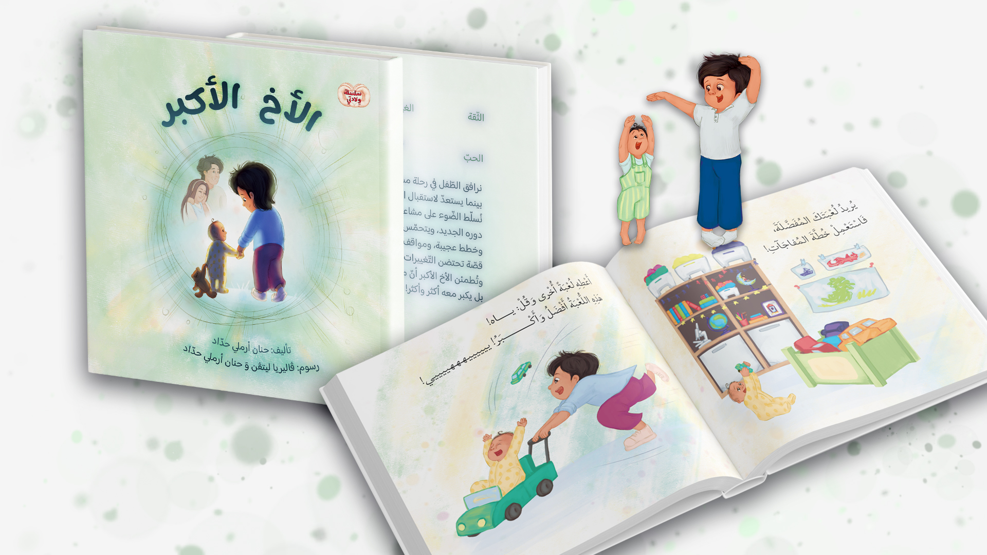قصّة دافئة ومليئة بالمفاجآت ترافق الطّفل في رحلته لاستقبال المولود الجديد. تسلّط الضّوء على مشاعر الأخ الأكبر: الغيرة، الحبّ، الفخر، والانتماء، وتمنحه مساحة ليفهم دوره الجديد بخطوات بسيطة ومواقف مضحكة قريبة من قلبه. القصّة تساعد الطّفل على الشّعور بالأمان في التّغيرات الكبيرة داخل العائلة، وتؤكّد له أنّ مكانته لا تتغيّر، بل تكبر معه وتزداد أكثر فأكثر.