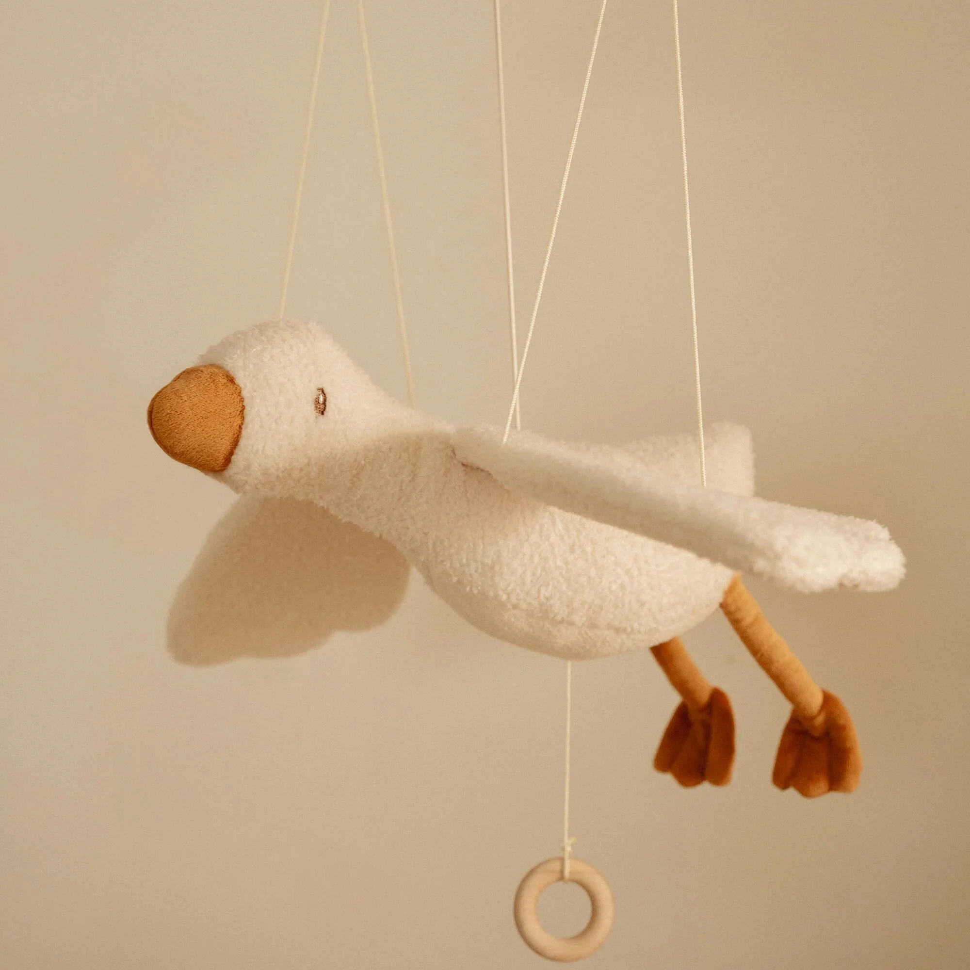 تضيف زينة الإوزة الصغيرة المعلّقة لمسة ناعمة ومرِحة لأي غرفة أطفال. عند سحب الخيط، تتحرّك الأجنحة صعودًا وهبوطًا بحركة تشبه الطيران الحقيقي، ما يجعل الإوزة تبدو وكأنها تنبض بالحياة.