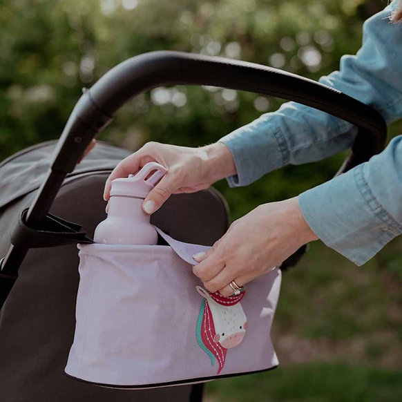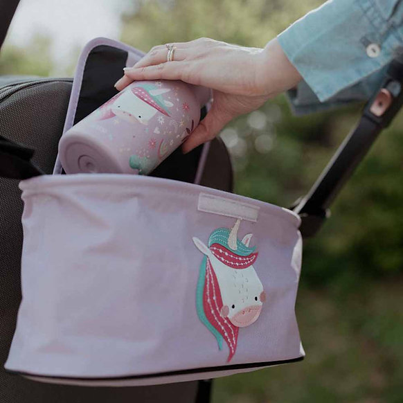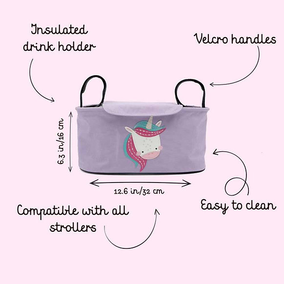 حقيبة منظم عملية وجميلة مزينة بتطريز ورسومات لوحيد القرن، مخصصة لحمل كل المستلزمات الأساسية عند الخروج مع العربة.