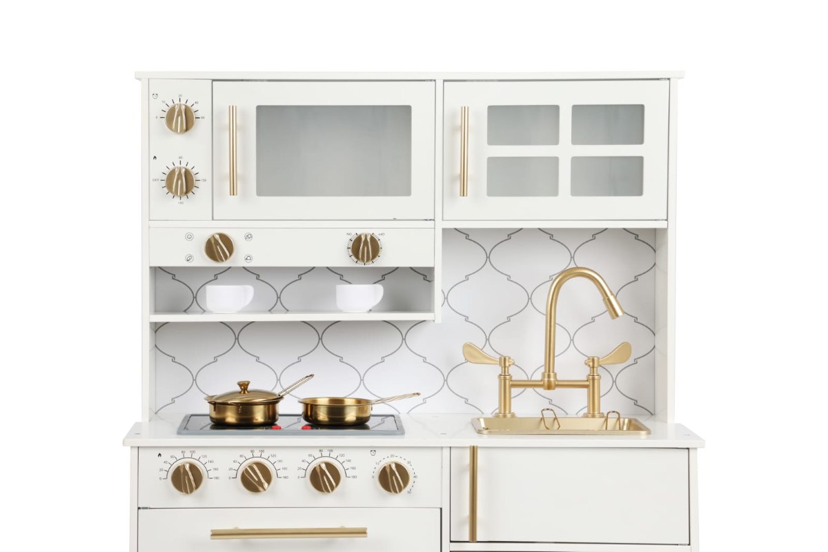ومع هذا المطبخ الخشبي عالي الجودة، المصمم ليُحاكي المطبخ الحقيقي، يحصل الطفل على تجربة تفاعلية ممتعة تساعده التعرف على عالم الكبار من خلال اللعب.