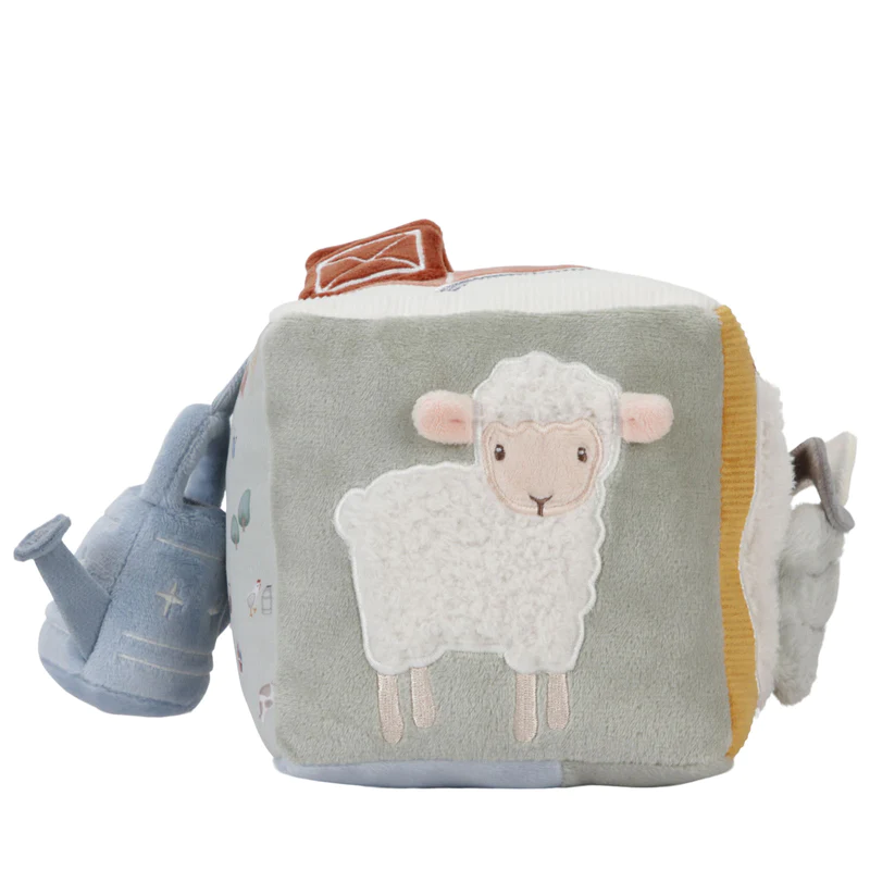 مكعب أنشطة ناعم ومليء بالاكتشاف، صُمم خصيصًا لتحفيز حواس الطفل منذ الأشهر الأولى. كل جانب من المكعب يحتوي على نشاط مختلف بملمس وأشكال متنوعة تساعد على تنمية الحواس وتوفر متعة لعب لا تنتهي. يمكن للطفل إمساك المكعب وتدويره بسهولة، كما يحتوي على مرآة صغيرة لتشجيع الاكتشاف الذاتي.